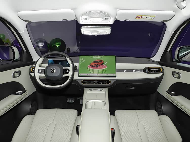 具体来看,外观方面,前脸部分方正的车鼻带有扁平的大灯组,内部有着简洁的光源和熏黑的样式,突出了时尚感,前保险杠部分同样是简洁的下格栅,黑色的装饰增强了层次感,车标大小写字母,相当的个性,还有多达6种车漆,显得鲜亮时尚,并支持36色DIY车顶,进一步满足个性化的需求。