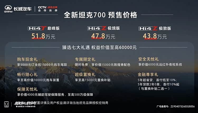 近日,新款坦克700车型正式开启预售,该车主要是推出了Hi4-Z版本,也让该动力配置在全系车型上普及,预售价格43.8万元起,按照惯例最终上市之后还会更低一些,老款Hi4-T版本的售价是42.8万元起,最终优惠之后肯定会低于这个数。