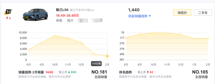 虽然这款车在9月换代后凭借“20万级唯一800V大电池增程”的标签迎来了短暂爆发,月销量一度冲高至8936辆,但随后便开始显出疲态,在今年2月销量甚至跌到了1440辆,这种“高开低走”的销量曲线,暴露出该车在激烈的20万级SUV市场中缺乏持续吸引消费者的核心竞争力,一旦竞品降价或推出更具吸引力的配置,智己LS6的订单池便会迅速萎缩。