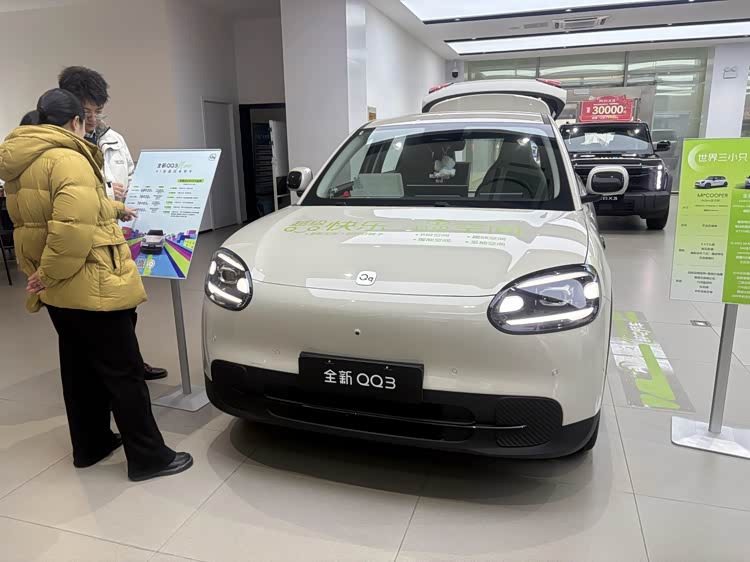 在新能源区,热度最高的属当时还在预售阶段、现在已经正式上市的QQ3,从预售到当日,9天时间,他个人已经卖出去17台。其次卖得比较好的就是风云X3和风云X3L,由于隐藏式门把手不符合新国标,正在降价处理——风云X3降价3万,风云X3L降价4万。这两台车一个月能卖20-30台左右。