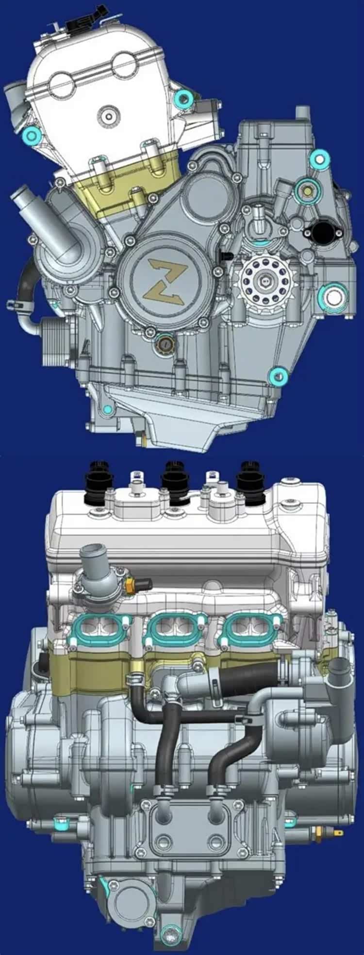 而且820RR还更轻!193kg的标准版质量,比本田CBR650R轻15kg,比杜卡迪V2轻7kg。三缸发动机本身就是硬核产物,相比四缸震动控制更难,又拥有双缸的低转扭爆发力。镁合金活塞加上钛合金节气门,这台三缸发动机干重仅52kg。