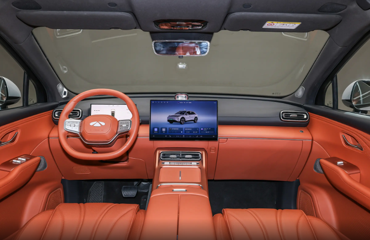 进入车内,环抱式座舱的设计营造出视觉上的宽敞感,中控台采用15.6英寸悬浮式大屏与全液晶仪表的组合,车内大部分区域均使用了软质材料包覆,并提供了暖霞金橙、水墨霁蓝等三种配色方案,满足了不同消费者的审美需求。256色氛围灯与全景天幕的组合,在白天和夜晚都能提供不错的车内氛围。不过,内饰设计的审美终究因人而异,可能有部分消费者觉得木纹饰板的运用会略显刻意。