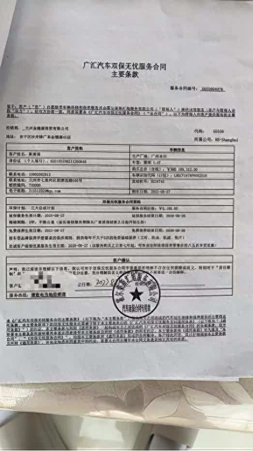 “我在广汽本田官方授权4S店买了厂家双保无忧套餐,还预存了3490元维修理赔款、持有1300元未使用保养券,现在门店倒闭了,厂家却说这是4S店的独立行为,和他们无关。”近日,甘肃兰州的广汽本田苏先生(化名)车主向车友公社反映,他是一款2022款 雅阁(参数|询价)260TURBO幻夜·尊贵版,其在广汽本田授权4S店兰州金穗康商贸有限公司购车时,捆绑购买了包含6年质保、9年18次保养的厂家双保无忧套餐,同时门店代为保管的事故理赔款、保险赠送的保养券均未使用,门店闭店后,上述权益全部无法兑现,多次联系广汽本田400客服,均被以“系4S店独立行为”为由拒绝处理。