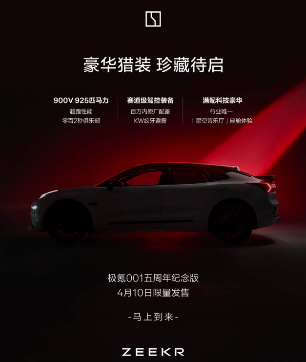极氪001五周年纪念版将于4月10日上市 或售35万元