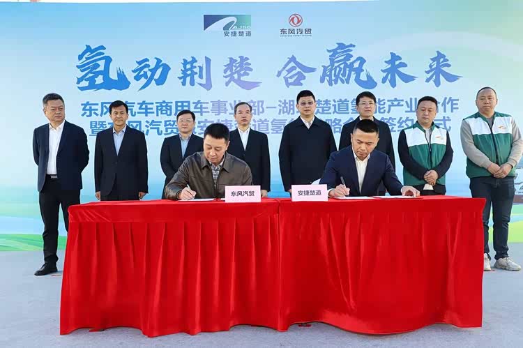 3月30日,武汉。东风汽车旗下东风汽车贸易有限公司与湖北安捷楚道供应链有限公司(以下简称安捷楚道)正式签署《氢能重卡推广应用合作协议》。秉持“优势互补、资源共享、互利共赢”的合作理念,双方共同联合多家省级龙头企业,推进氢能重卡规模化采购与落地应用,助力构建湖北省氢能产业生态闭环。