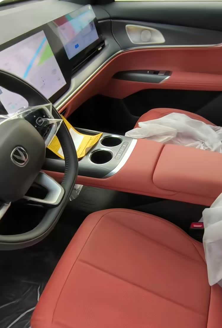 新车相比第四代 长安CS75 PLUS(参数|询价)燃油版,由双辐多功能方向盘换成了三辐式多功能方向盘,副仪表台为上下双层机构,上面一层有手机无线充电面板、杯托,并新增一组空调控制的实体按键,前排电动座椅增加腰托调节。