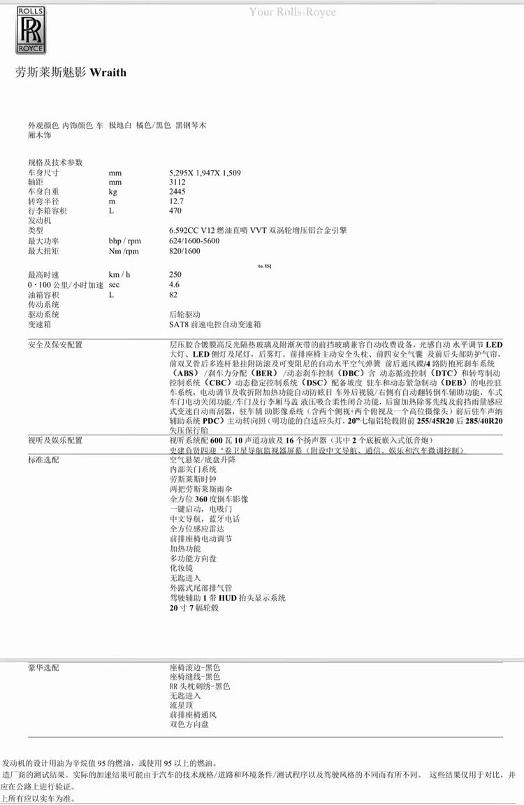 车家号·0浏览·2026-03-31 16:14 · 广东劳斯莱斯 魅影 Wraith 白/橙