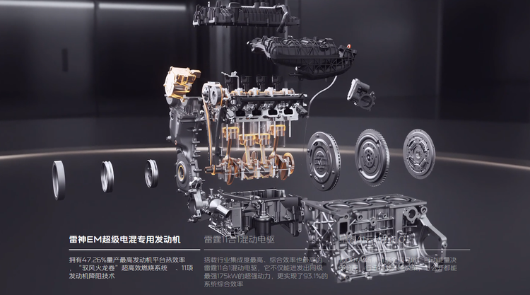 经济性这块,我们就算电池没电了,它的馈电油耗官方宣布的是3.35L/100km,比很多小型燃油车都省油。动力系统是1.5L插混系统,发动机最大功率82kW,