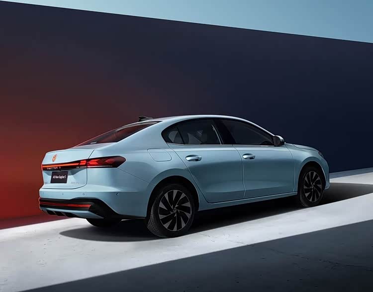 车身侧面采用了标准的三厢溜背设计,取消了传统的后排三角窗,搭配17英寸刀锋轮圈和传统门把手,姿态低趴且富有动感。车尾部分同样采用贯穿式尾灯,内部灯组点亮后呈X样式,后包围辅以黑色装饰套件,并配有小鸭尾设计,进一步增强了整车的运动气息。