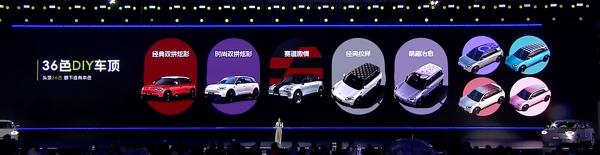 配色方面也很有看点,新车提供了月剑银、翎羽白、云粉米、飘逸紫、赤焰红、桃夭粉共六种车身配色,另外还支持36色DIY车顶,也能看出新车主要针对年轻用户。