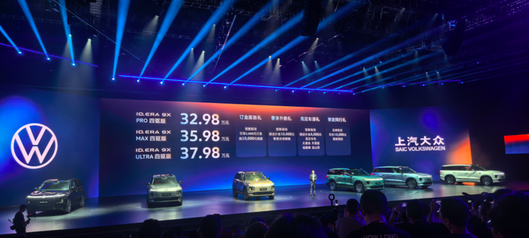 两年后,上汽大众不仅乖乖掏出“黄金增程”,还甩出一台大众有史以来尺寸最大的旗舰SUV—— ID.ERA 9X(参数|询价),预售价32.98万起。