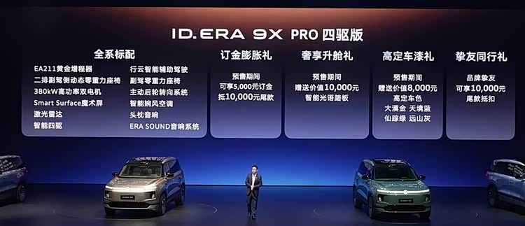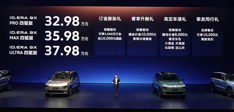 3月30日,上汽大众 ID.ERA 9X(参数|询价)开启预售,新车的预售价为32.98-37.98万元。光说这个价格可能大家没概念,但如果我说这是一台和理想L9同级别的大型增程SUV,而理想L9的价格则要40.98万起,相信大家就有概念了。更为关键的是,这个还只是预售价,实际价格应该还会再低一点。也正是如此,新车的预售价公布后便吸引了很多的关注。那么除了价格和尺寸,新车还有哪些看点呢?别急,今天我们就来聊聊这台车。
