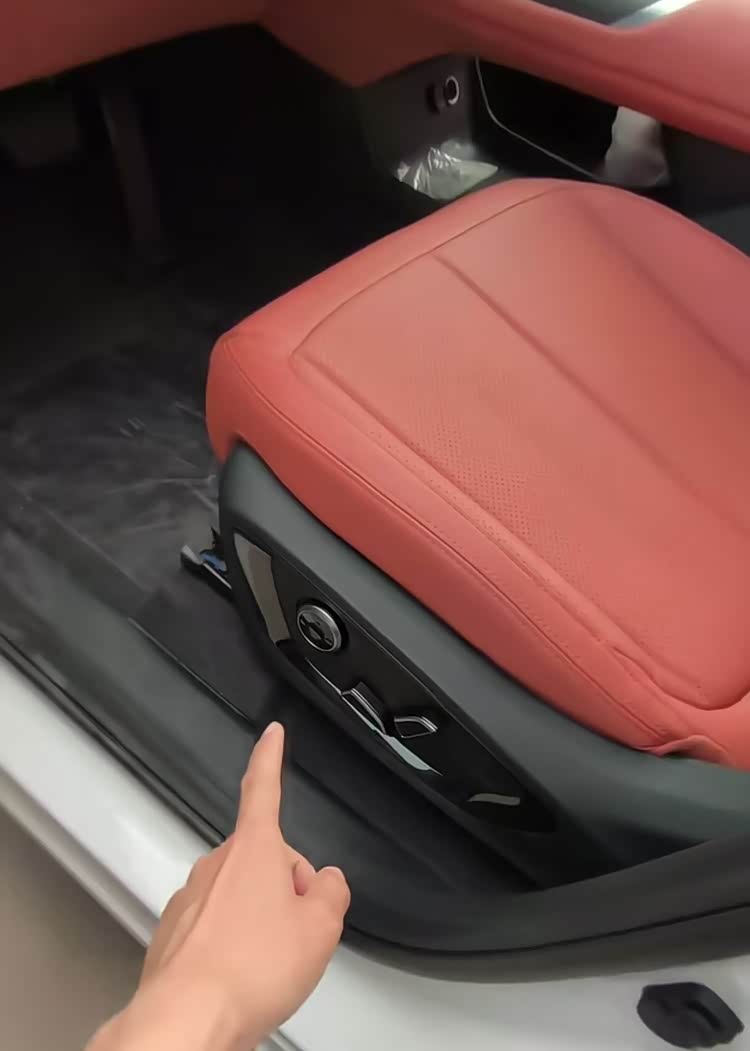车内空间宽敞,前排一体式座椅有加热、通风功能,副驾是零重力座椅还带电动腿托,后排座椅填充厚实、坐垫够长,还有折叠小桌板,乘坐舒适性佳。