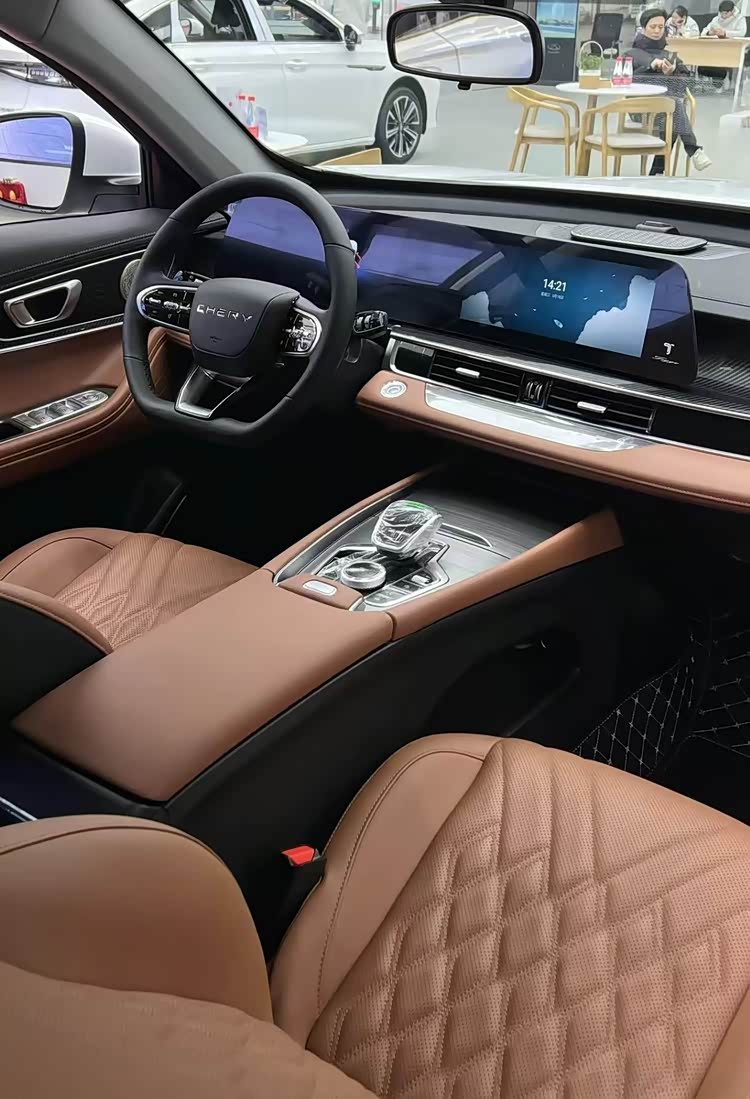 内饰方面,新款瑞虎7变化显著,采用和瑞虎8 PLUS相似风格,双联屏从直屏改为曲面屏,车机系统功能丰富,支持语音识别控制等多种操作。多功能方向盘和电子挡杆造型精致,还提供全景影像、无钥匙进入和启动等功能。副仪表台上下双层结构,方便存放物品,座椅菱形缝线处理提升质感,主驾电动调节,后排空间能满足一般家庭需求。