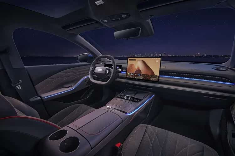 在动力与能耗上,新车搭载雷神EM-i AI电混系统(1.5L Evo+ E-DHT)凭借热效率高达47.26%的全球量产最高发动机,及星睿AI云动力2.0的智慧能量管理,百公里馈电油耗低至3.32L(CLTC),为5米级轿车最低——其满油满电综合续航高达1700km+,尽可让用户自在远行。