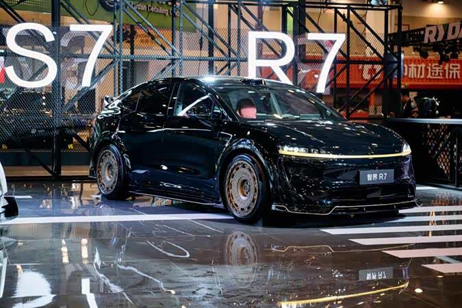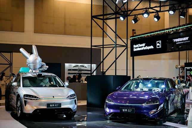 除了两台“以东方文脉铸魂,以智能性能扩界”为理念打造的潮改车之外,现场还展示了两台智界汽车与ROBBi联名的作品,将潮流态度与驾控乐趣相融,彰显出智界车主独树一帜的风格标识。智界R7“‘大领航家’异形改装车”基于R7溜背尾部与低风阻流线打造,车尾推进器的设计来源于ROBBi背上的推进器,机能图腾加持性能轮毂,当ROBBi遇见智界,携手开启重塑边界的科技旅程;智界新S7“暗影掠影”凌厉的线条象征新S7疾速行驶下的风刃,让原本就肌肉感饱满的车身更具动感,配合亮银的材质,无论亮处暗处都是吸睛的焦点。