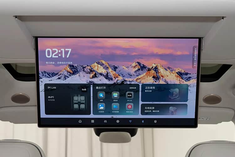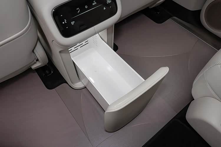 后排车顶还带有吸顶大屏,12.3升智能冷暖双用冰箱也将会是标配,另外新车后排还能够提供石墨烯“地暖”。