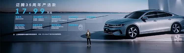 迈腾35周年严选款以17.99万元定价,搭载15英寸中控大屏、副驾娱乐屏、IQ.360全景影像等配置,成为合资B级车市场的“价值锚点”,守护迈腾的口碑与份额。