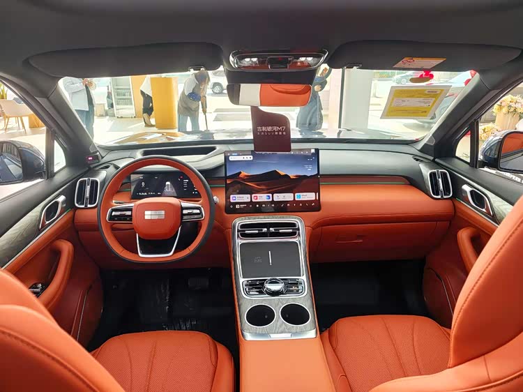 内饰方面,银河M7提供三种风格选择,悬浮式横屏、全液晶仪表屏及HUD抬头显示,科技感满满。银河Flyme Auto智能座舱系统与千里浩瀚辅助驾驶H3方案,让驾驶更加便捷安全。皮质与麂皮包覆,配合镀铬与木纹饰板,尽显奢华。前排运动座椅功能丰富,后排纯平地台、空调出风口等配置一应俱全,舒适性极佳。