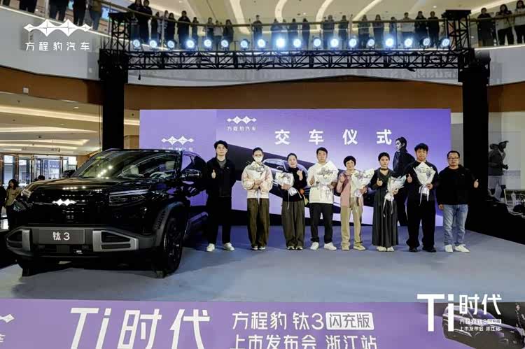 产品讲解环节结束后,本次活动还为杭州地区首批10位钛3闪充版车主,举办了隆重的集体交付盛典。方程豹品牌领导登台,为每一位交付车主献上定制交车鲜花,与现场所有嘉宾共同见证车主们的幸福时光。