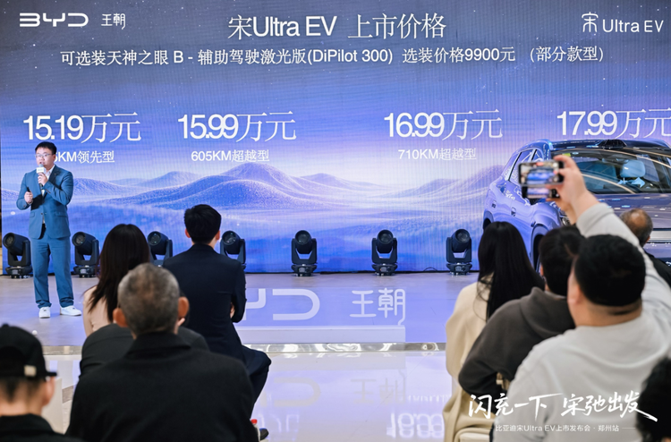 3月29日,闪充一下 宋弛出发——比亚迪 宋Ultra EV(参数|询价)上市品鉴会在郑州·高新万达广场惊艳开启。作为王朝网首款搭载闪充技术的纯电SUV,宋Ultra EV凭借“闪充速度+生活温度”的硬核实力,吸引了众多媒体朋友、迪友及准车主亲临现场,共同见证这款划时代产品的正式登场。