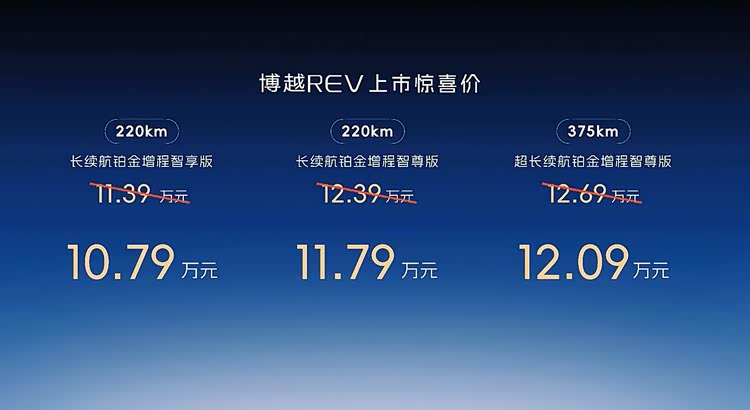 车家号·0浏览·2026-03-31 23:26 · 江西家庭用户选增程SUV,空间、舒适、智能、安全一个都不能少!吉利博越REV正式上市,10.79万元起的亲民定价,搭配越级尺寸、奢享座舱、智能交互与全域安全,把家用出行的幸福感拉满,重新定义12万级增程SUV的价值上限。