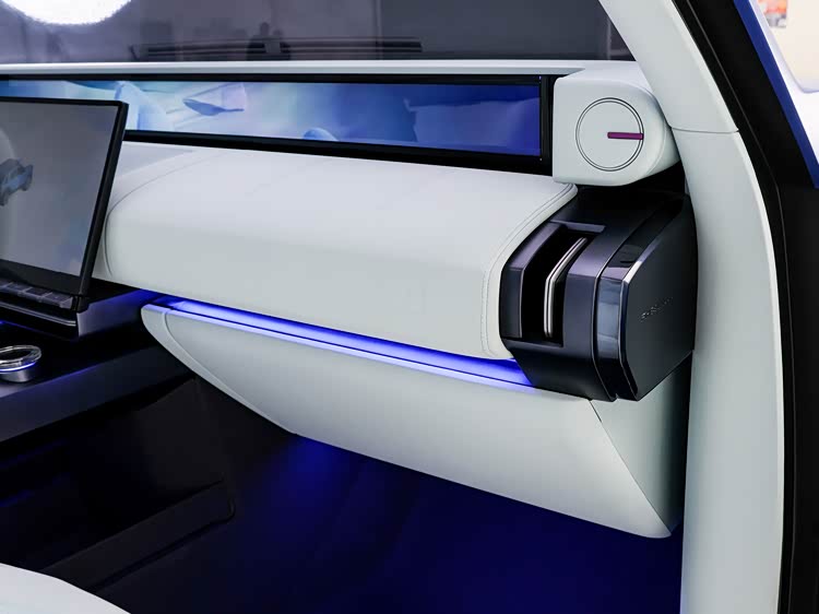 在用料方面,Concept 97采用织物材质作为核心元素之一,这类材料在重量控制与触感表现上具有一定优势,同时也符合当前新能源车型在环保方向上的趋势。织物与功能模块结合,使内饰结构更偏向实用取向,而非装饰导向。整体车内没有采用复杂拼接或大面积高反光材质,更注重使用场景中的耐用性与触感稳定性。