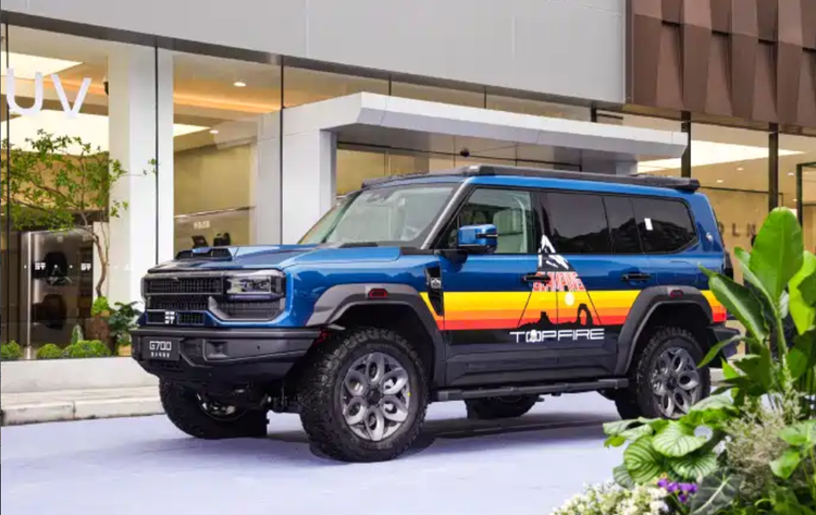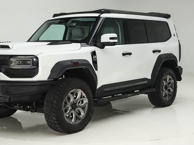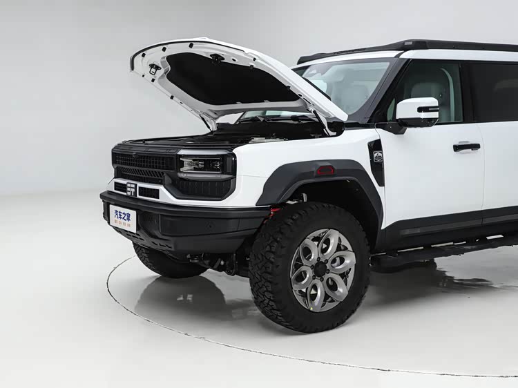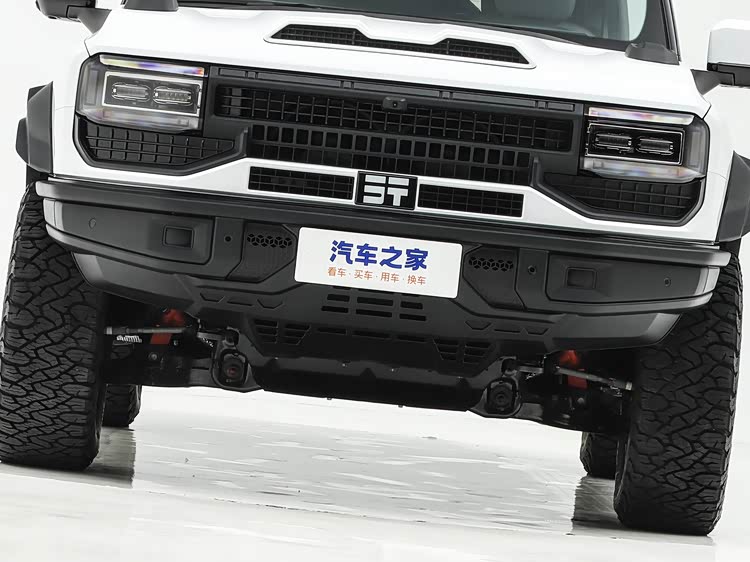 外观部分延续硬派SUV常见的方盒子轮廓,车身比例以垂直线条为主,车头区域加入专属竞技风格格栅以及重新设计的前保险杠结构。发动机盖增加双导流进气开口,主要用于提升高负荷工况下的散热效率,同时也强化了整车的机械属性表达。照明系统采用LED矩阵大灯组合,并加入穿透式日行灯设计,灯组内部进行黑化处理,降低视觉反光干扰。中网位置的品牌标识支持点亮,在夜间具备更高识别度。