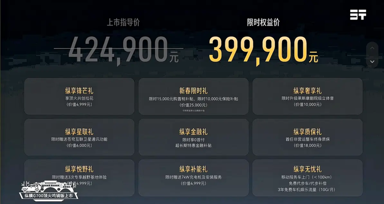 从整体产品逻辑来看,纵横G700顶火鸣镝版的核心在于“原厂完成越野强化”,避免用户后期改装的复杂流程,同时通过混动系统补足传统越野车在油耗与续航方面的短板。其目标用户更偏向有中高强度越野需求,同时兼顾日常通勤的群体。如果从使用场景出发,这类配置组合在长途穿越、复杂路况以及多场景切换中具备一定实用价值。是否选择,关键仍在于用户对越野频率、使用环境以及预算区间的匹配程度。