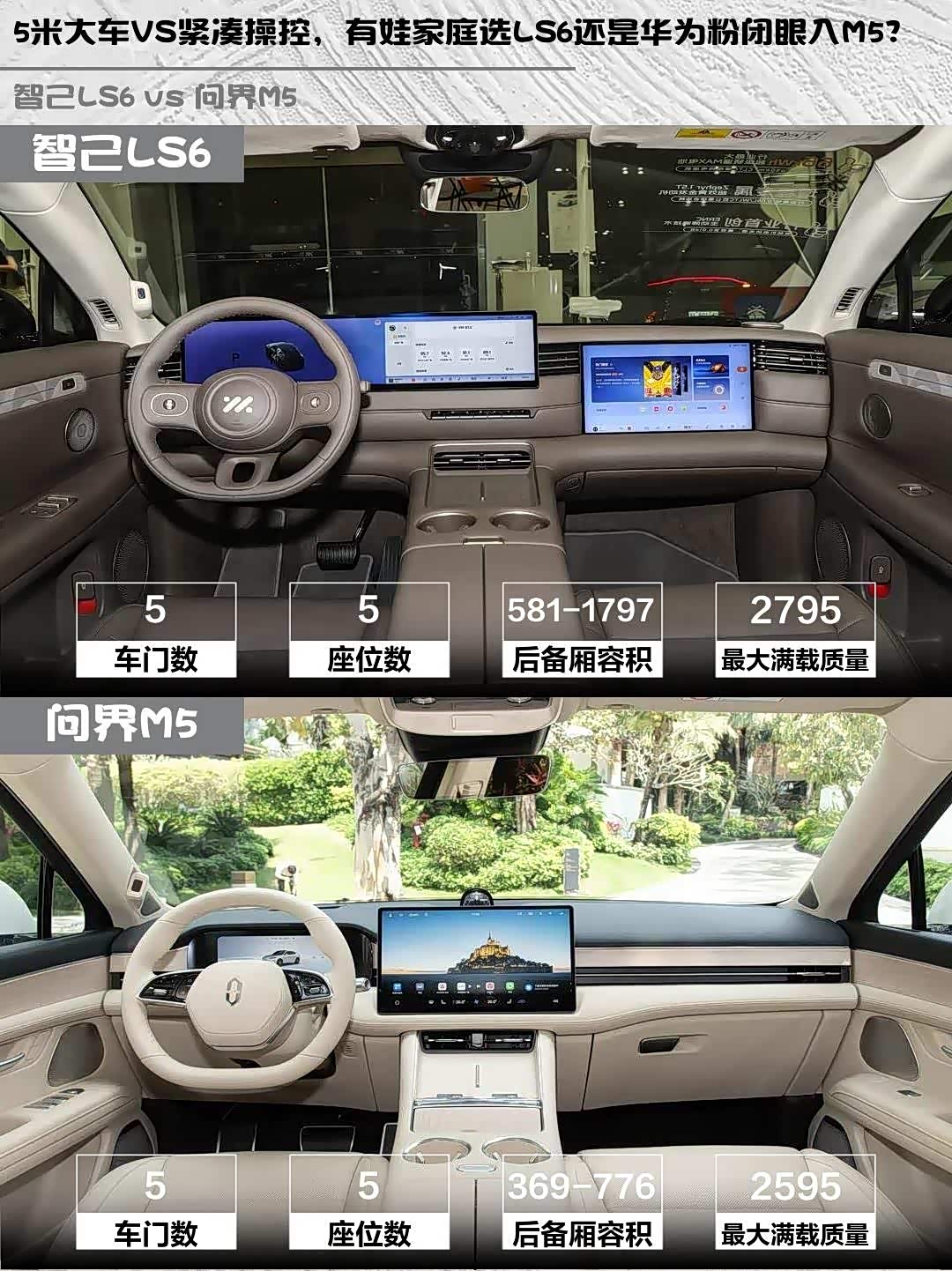 5米大车VS紧凑操控,有娃家庭选LS6还是华为粉闭眼入M5?