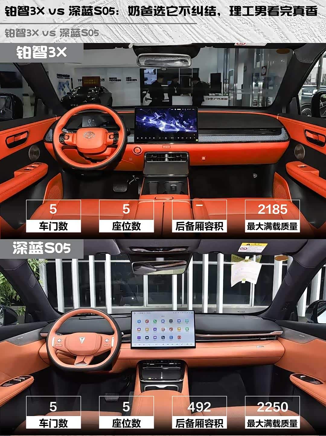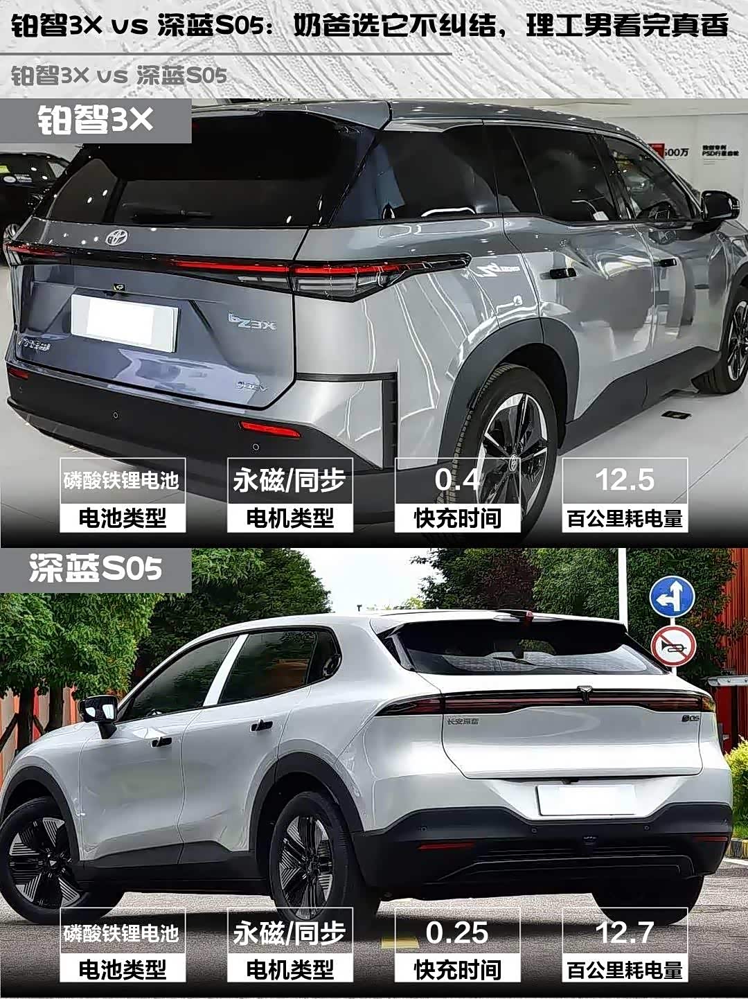 要品牌可靠+家用舒适选铂智3X,要续航性能+科技感选深蓝S05。我最后选了铂智3X,毕竟丰田的品质背书和超大空间更符合奶爸需求。你们会怎么选?评论区聊聊~