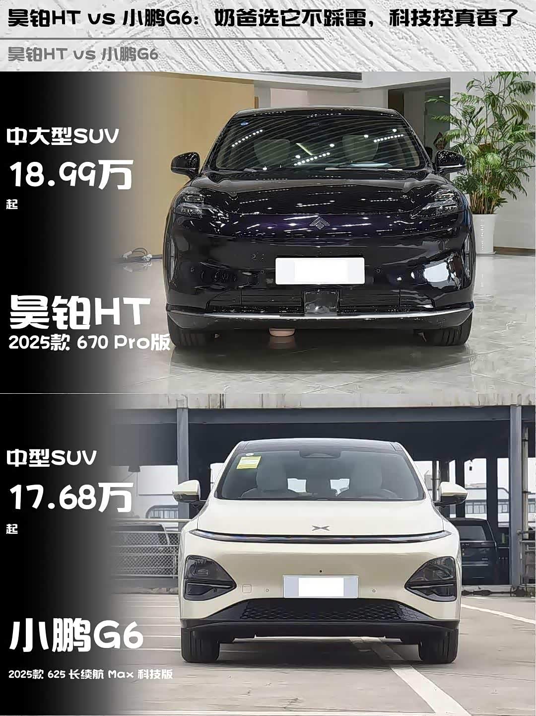 最近在选20万级纯电SUV的朋友看过来!今天深度对比两款热门选手—— 昊铂HT(参数|询价) 2025款 670 Pro版和小鹏G6 2025款 625 长续航 Max 科技版,看完这篇你就知道谁更适合你!🚗💨