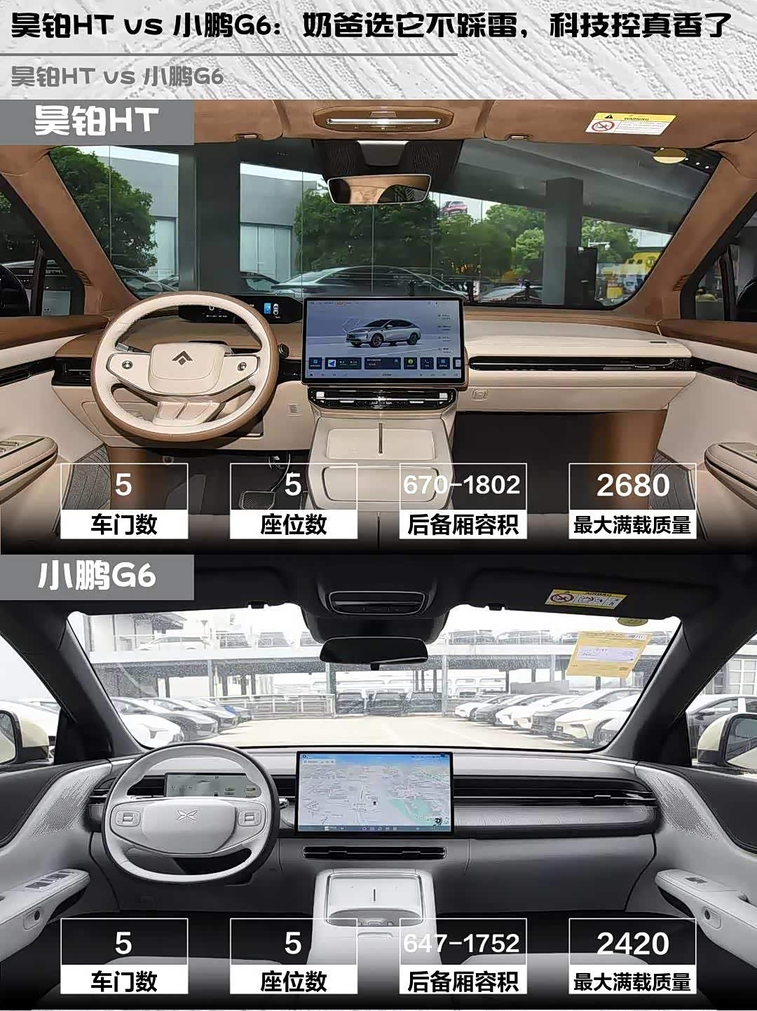 要豪华大空间选昊铂HT,要智能科技选小鹏G6。像我这种周末爱带全家露营的奶爸,昊铂HT的后排天王椅+超大后备箱真是香!但如果你每天通勤30km+,小鹏G6的智能驾驶确实能省不少力。