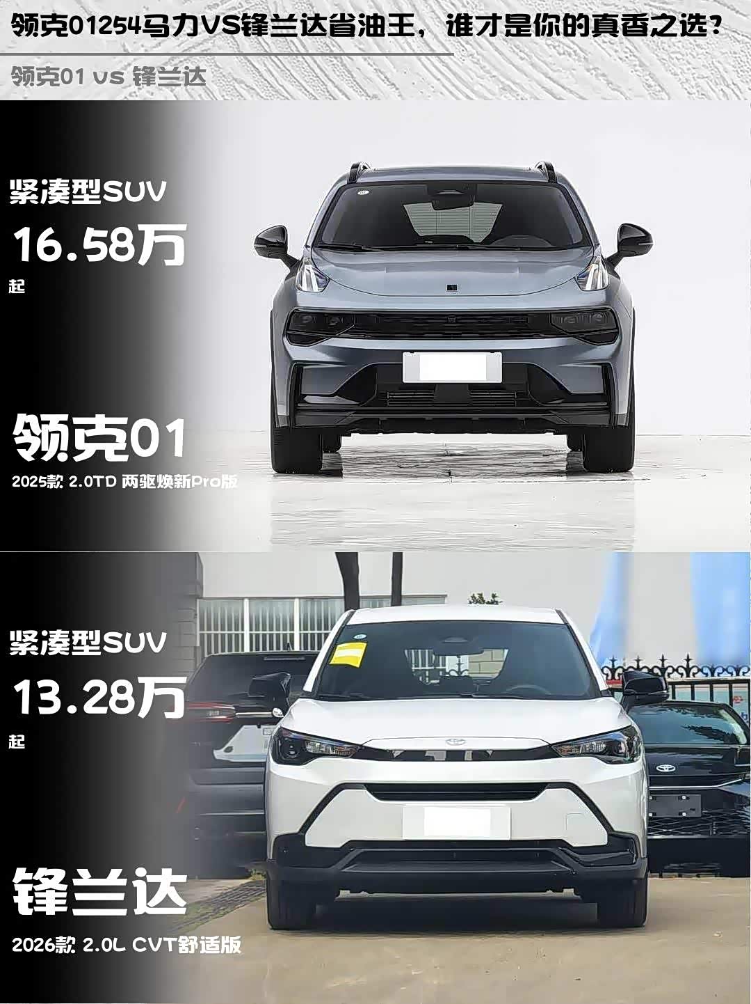 车家号·0浏览·2026-04-01 08:53 · 北京最近在选车的朋友看过来!今天深度对比两款热门紧凑型SUV—— 领克01(参数|询价) 2025款 2.0TD 两驱焕新Pro版和锋兰达2026款 2.0L CVT舒适版,看完这篇你就知道哪款更适合你!🔥