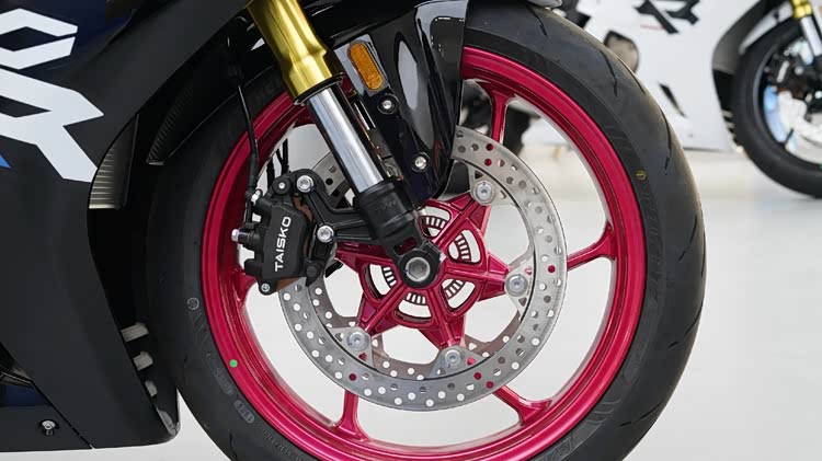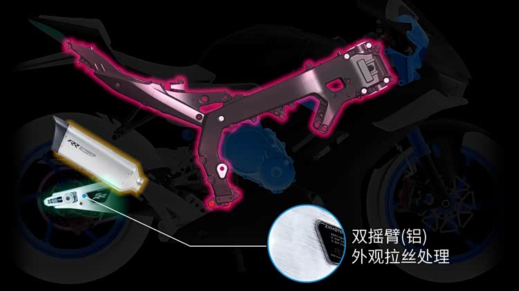 在结构上,该车采用了全铝合金铸造车架,并配套了渝安前倒置减震器、中置多连杆悬挂、铝合金后摇臂,泰斯克双子星四活塞卡钳、可关闭双通道ABS、弯道ABS、电子油门、双向快排、液压离合、无钥匙启动、6.2英寸TFT仪表等。