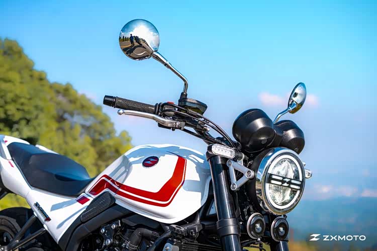 这是一款复古街车,发布于去年9月份。它是张老板为取悦用户而打造的一款车型,在整体风格上500F致敬了本田的CB400,所以外形还原度很高,复古头灯、圆形仪表、水滴油箱等极具辨识度。
