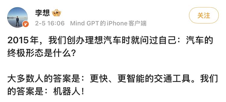 目前理想的战略分为两个路径,一个是投入具身智能垂直技术整合,攻克端侧推理芯片、模型、操作系统等共性核心技术;再一个则是以创业公司模式,轻量化孵化AI眼镜、人形机器人等新业务。