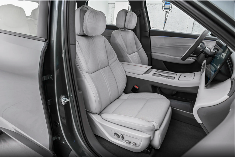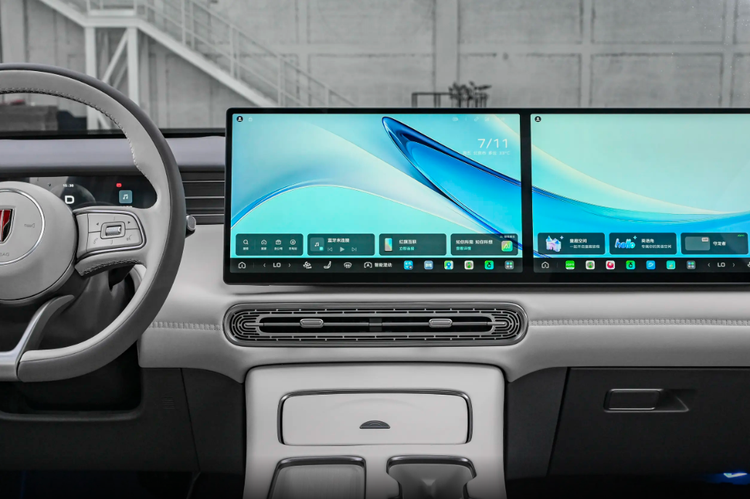 拉开车门就能闻到很淡的皮革味,车内用料很实在,手能碰到的地方基本都是软包。中控台是阶梯造型,层次感很强,上层软质搪塑、中间饰板、下面皮质包裹,缝线也很精致。双色三辐方向盘握感饱满,前面是8.88英寸内嵌仪表盘,数字看着很清楚。中间是双联屏,两块15.6英寸2.5K屏拼在一起,画质细腻得像iPad,悬浮设计还有物理隔断,不反光不晃眼。