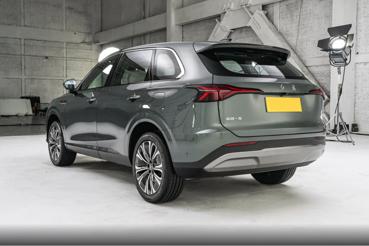 车身侧面线条舒展流畅,大五座SUV的体量感很足,腰线利落不臃肿,大尺寸铝合金轮毂一装,气场一下就上来了。车尾设计简约大方,凤翎样式的尾灯点亮特别好看,双Y灯带很有特色,跟车头龙凤呼应,整体宽敦敦的,看着稳当又耐看,家用、商务都撑得住场面。