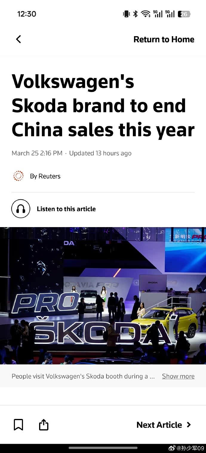 3月26日,大众集团旗下捷克汽车品牌斯柯达正式官宣:由于难以跟上中国汽车市场向电动化快速转型的步伐,该品牌将于2026年年中前停止在中国市场的新车销售业务。这家拥有130余年历史、在华深耕近20年的合资品牌,最终未能抵挡中国车市的激烈竞争,迎来了在华征程的终点。