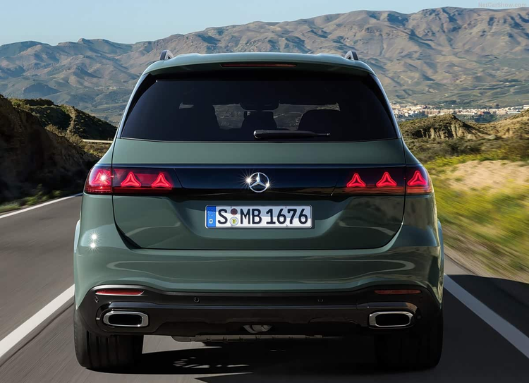 从官图来看,新款GLS并未改动其经典且稳重的整体车身比例,设计师的笔墨主要落在了前脸与灯组这些细节区域。车头部分,尺寸可观的进气格栅与醒目的三叉星徽标志得以延续,而内部结构经过重新设计的大灯组成为了视觉焦点。这种被称为星幕式的LED大灯,在内部融入了品牌徽标中的星辰元素,在点亮时能够提供独特的辨识度。车身侧面的线条依旧以舒展平直为主,充分保留了全尺寸SUV应有的体量感,这也在根本上保障了车内三排座椅的空间表现与整车的气势。轮圈方面,客户可以根据喜好选择从21英寸到23英寸不等的多辐样式。车尾的变化相对含蓄,最显著的是尾灯组升级为与新款E级轿车类似的贯穿式设计,使得车尾的视觉宽度得到延展。此外,后保险杠与牌照框区域的造型也进行了小幅优化,让整个尾部显得更加精致。