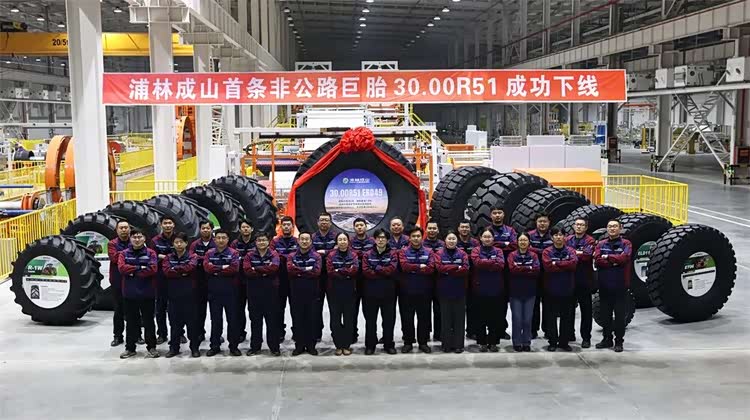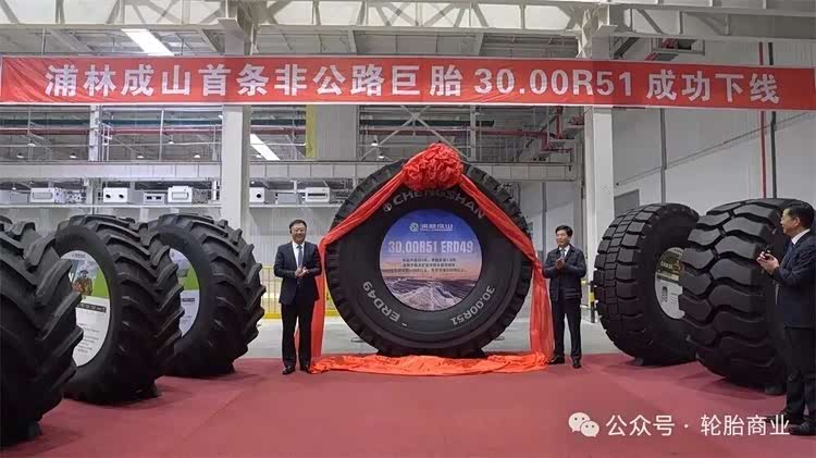 在非公路轮胎领域,浦林成山已跻身中国最强梯队。2026年1月19日,公司迎来了历史性的一刻——首条非公路巨胎30.00R51成功下线。这款巨胎外直径近3米,单胎重量达1.8吨,是专为露天矿区超大型自卸车量身打造的重量级产品。该轮胎可匹配承载120吨以上的车辆,使车货总重超过200吨,为矿业重载运输提供了坚实保障。