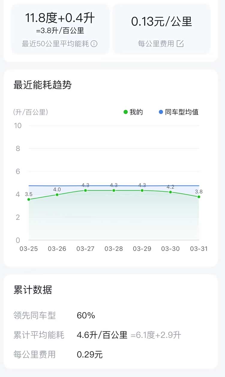 「小林同学」给电车通算了一笔账,比亚迪宋PLUS亏电油耗为4.5L/100km,日常驾驶的实际油耗均在4L/100km以内。