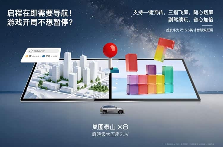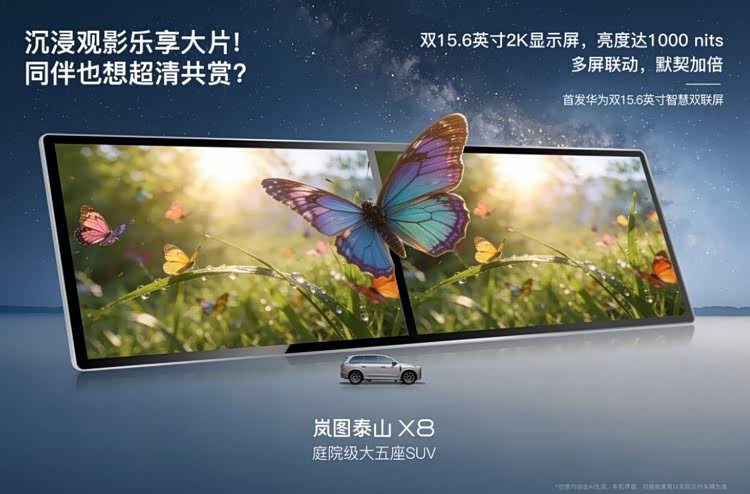 岚图泰山X8官宣首搭华为双15.6英寸双联屏