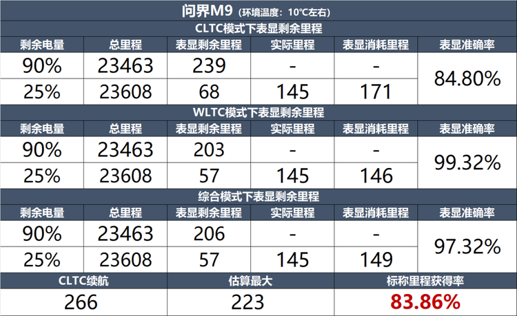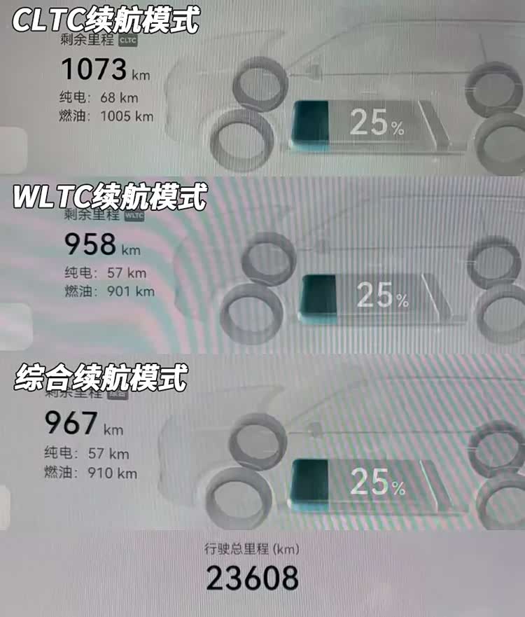 这辆车搭载了一块三元锂电池,容量足足有52千瓦时。纯电模式下,CLTC标称续航里程226公里。北京春季实测10℃左右,充电至90%,CLTC、WLTC和综合模式下,表显剩余里程分别为239公里、203公里和206公里;当行驶至电量剩余25%时,CLTC、WLTC和综合模式表显剩余里程分别为68公里、57公里和57公里,表显消耗171公里、146公里和149公里,实际行驶了145公里。表显准确率分别为84.80%、99.32%和97.32%,相当的靠谱。