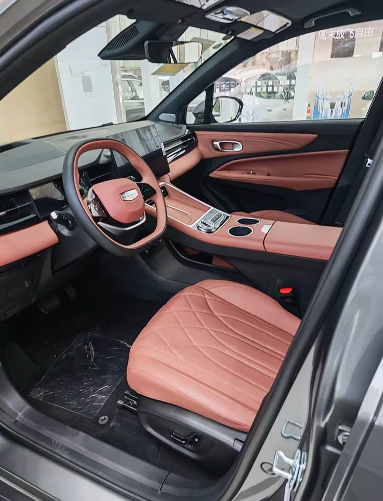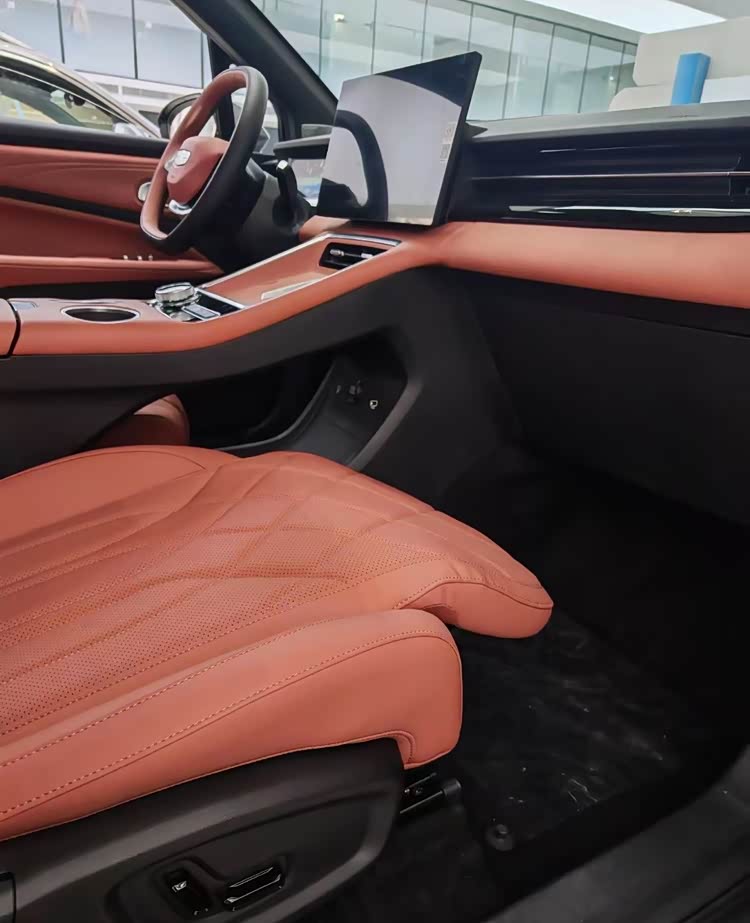 博越REV标配前排电动座椅和主驾座椅加热,高配车型可以享受到座椅按摩和通风以及副驾电动腿托,车内空间满足家用没问题,座椅填充厚实。