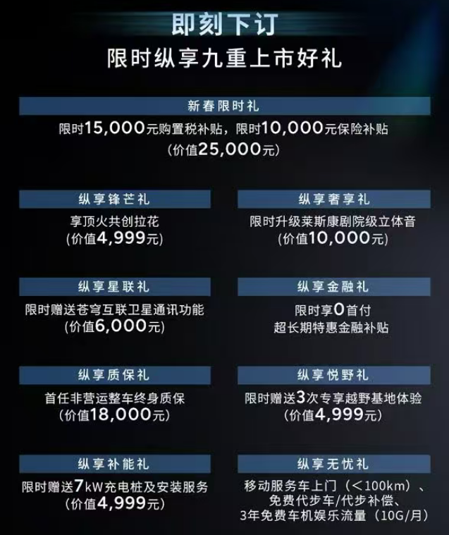 内饰保留35.4英寸联屏、哈曼音响等科技、娱乐配置,同时强化底盘护板与差速锁。相比常规版32.99万起的定价,鸣镝版以原厂改装、合法上路、完整质保,满足更专业的越野需求。