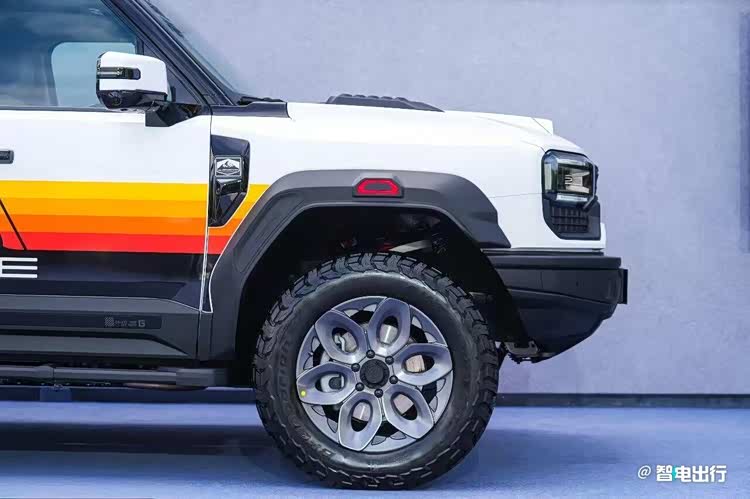 鸣镝版由国内顶级硬派高端改装机构顶火深度定制,底盘升高35.6毫米,轮距加宽94毫米,搭配科曼氮气减震与百路驰AT胎,通过角和稳定性显著提升。外观新增竞技前杠、宽体轮眉与机盖进气口,视觉更具硬派气质。