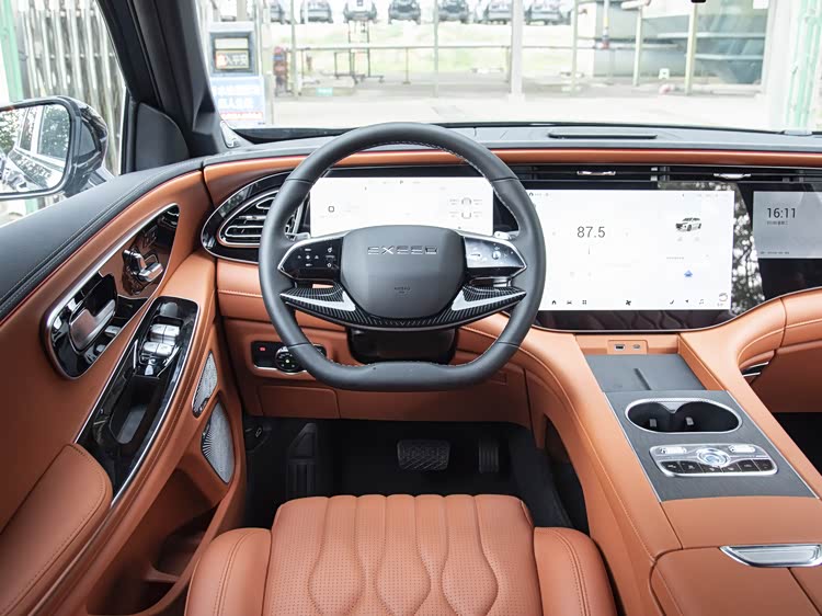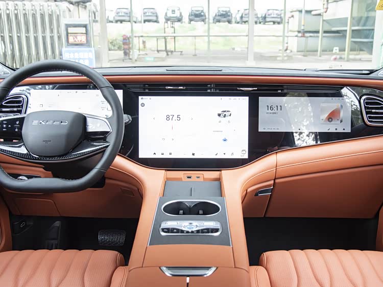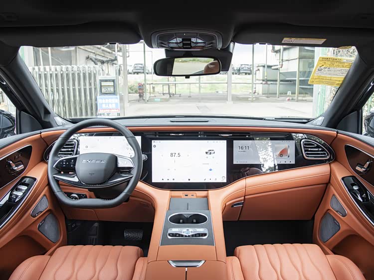 进入车内,五周年限定版整体布局与在售车型保持一致,中控台采用多屏组合形式,涵盖仪表屏与中控屏,车机系统逻辑延续现款结构。座椅布局依旧提供三排空间结构,满足家庭用户对多人出行的使用需求。