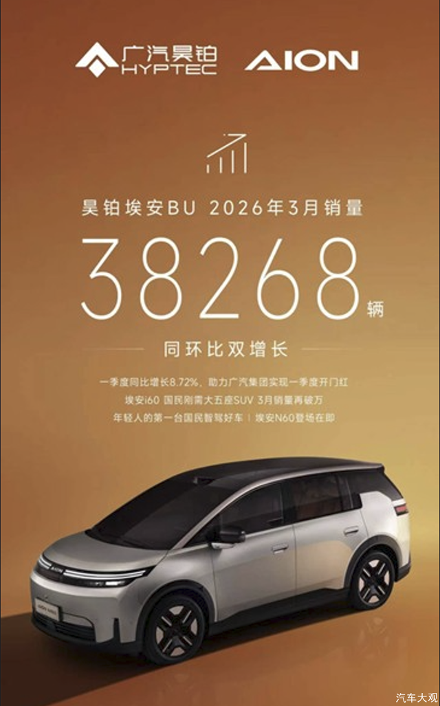 马年首季收官,中国汽车市场在多重因素交织下整体承压。然而,昊铂埃安却交出了一份颇为出色的成绩单:3月终端38268辆,同比增长12.28%,环比增长231.38%;1-3月销量合计75389辆,同比增长8.72%,实现一季度开门红,已成为广汽集团新能源板块的重要增长极。